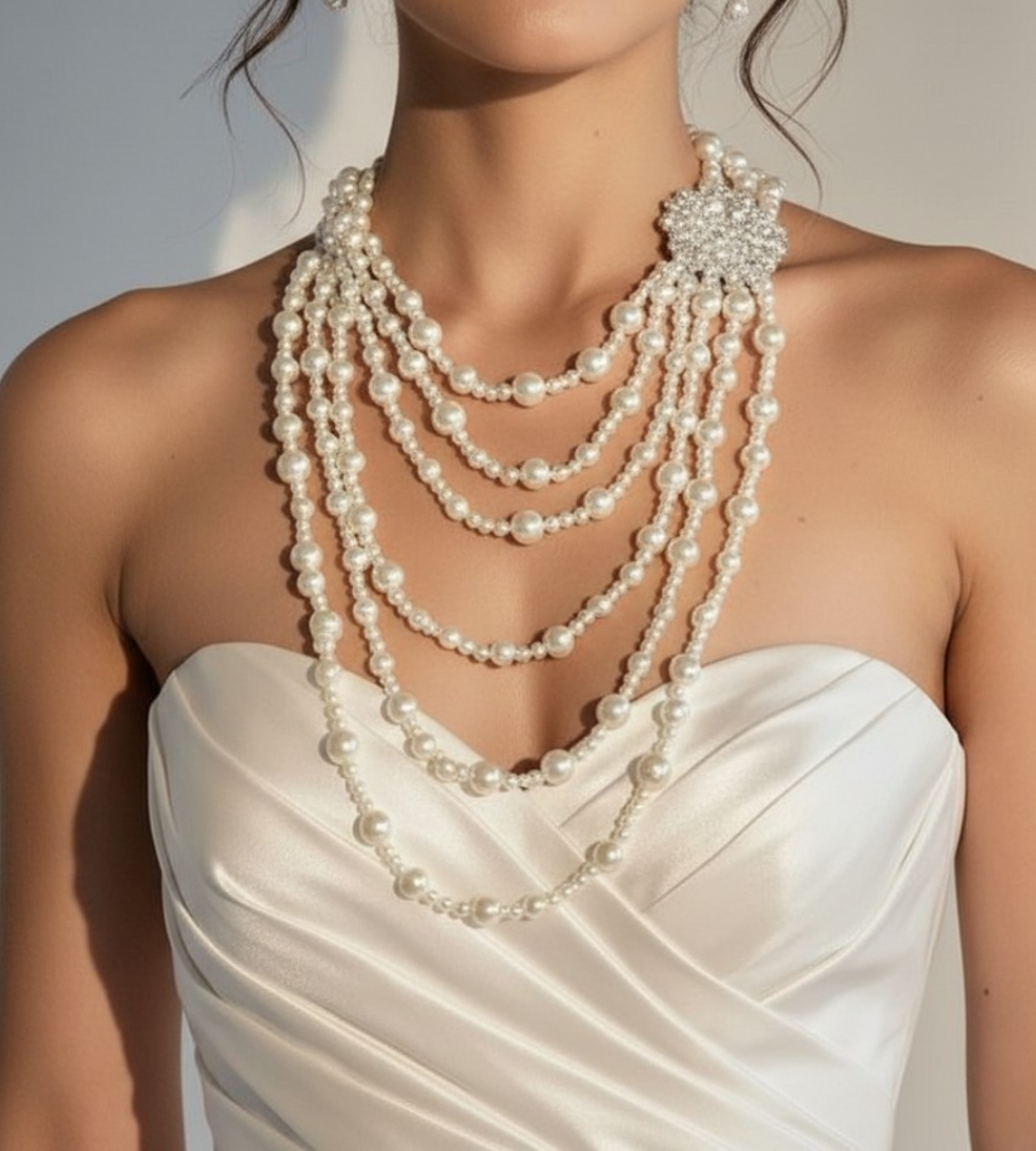 Aloura – Multi Strand Pearl Statement Necklace & Earring Set