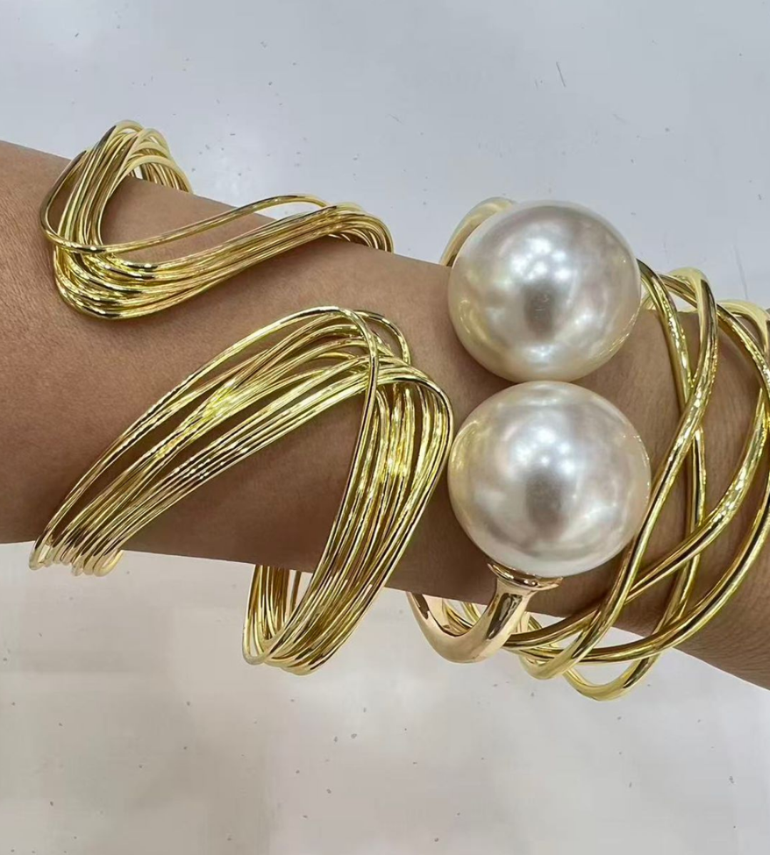 Moonlit Path- A Layered Gold Wire Pearl Wrap