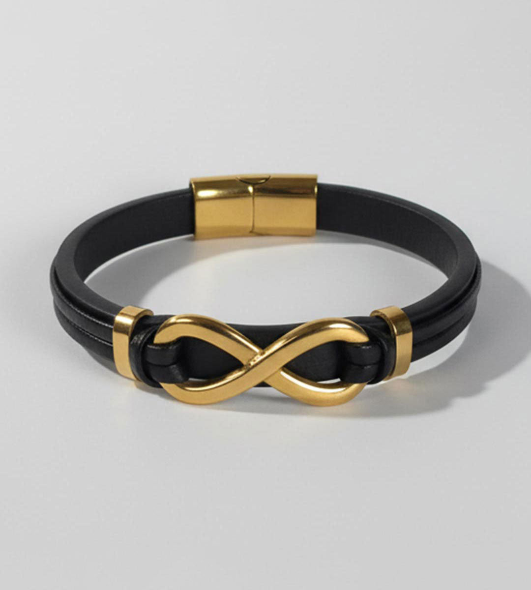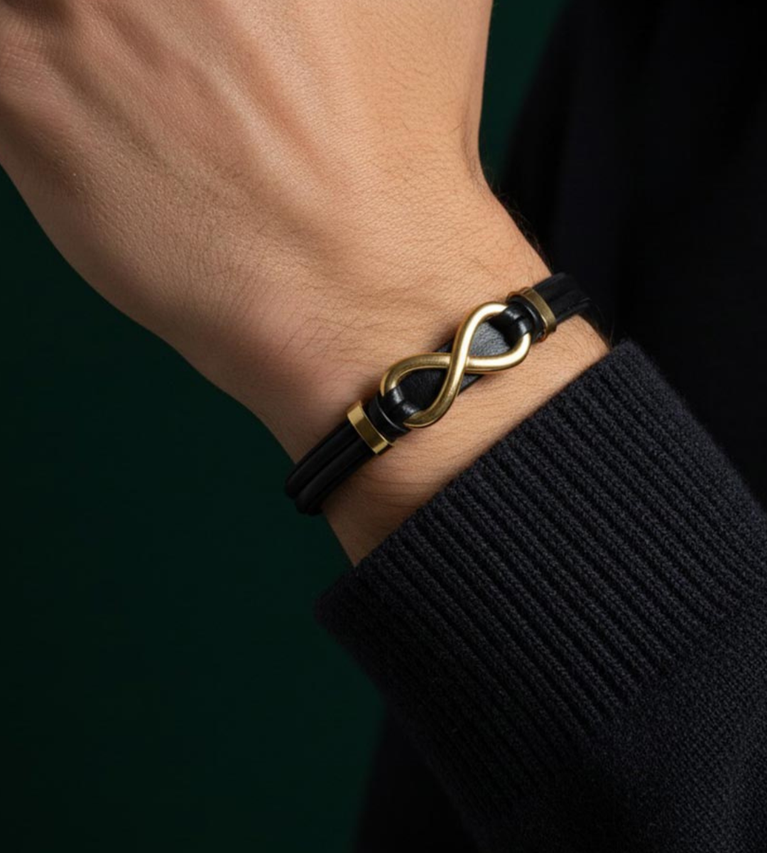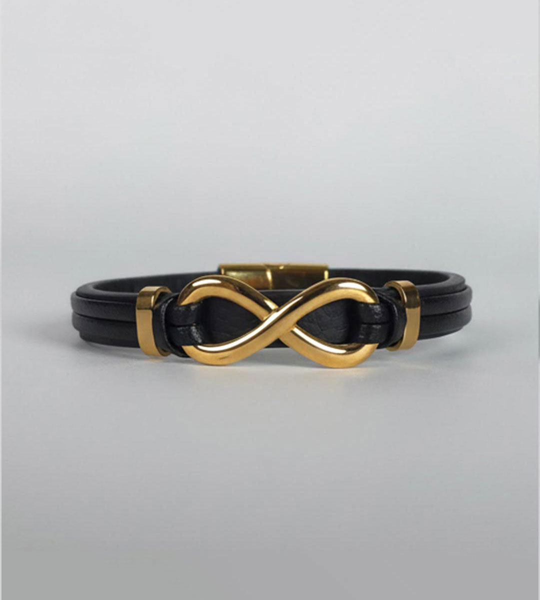 Designed for the modern individual, this piece perfectly balances the rugged appeal of genuine leather with the sophistication of high-polish gold hardware.