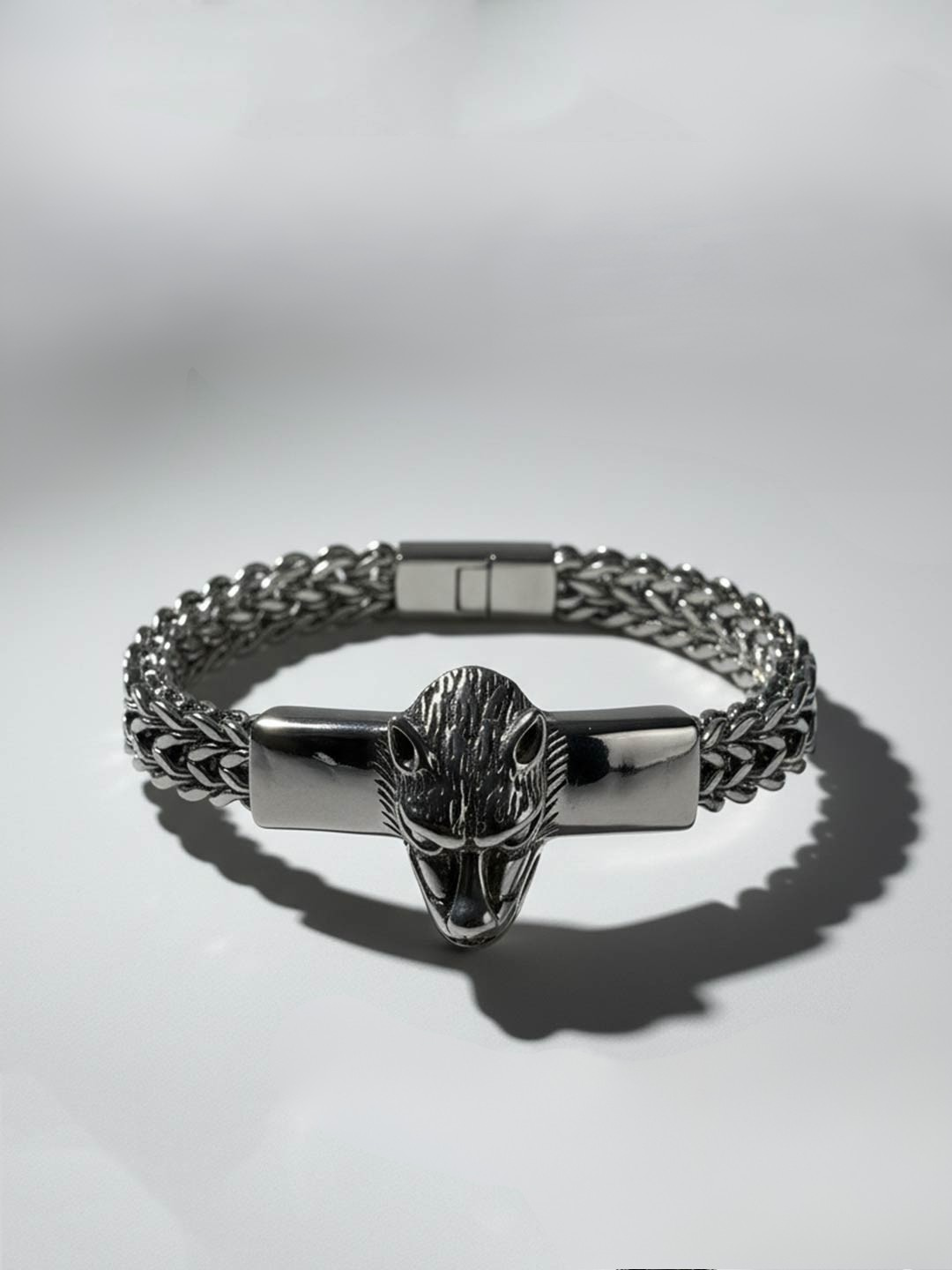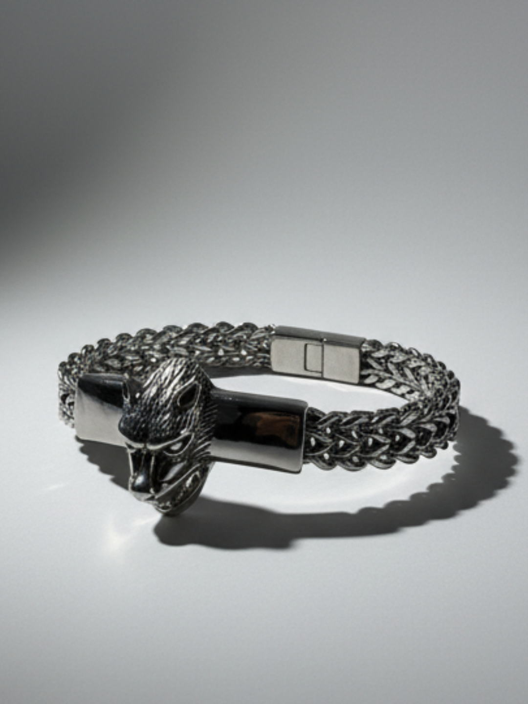 Unleash your inner alpha with the Howl – Cuff, a zinc-free, premium-grade piece built for men who lead the pack. Crafted with a bold wolf-head centerpiece and a meticulously woven chain, it embodies raw power and primal elegance. Hypoallergenic and skin-safe thanks to its zinc-free composition, Howl delivers lasting comfort and durability while making a fierce style statement. Free-size and timeless, this bracelet is more than an accessory, it’s a symbol of strength, dominance, and untamed spirit
